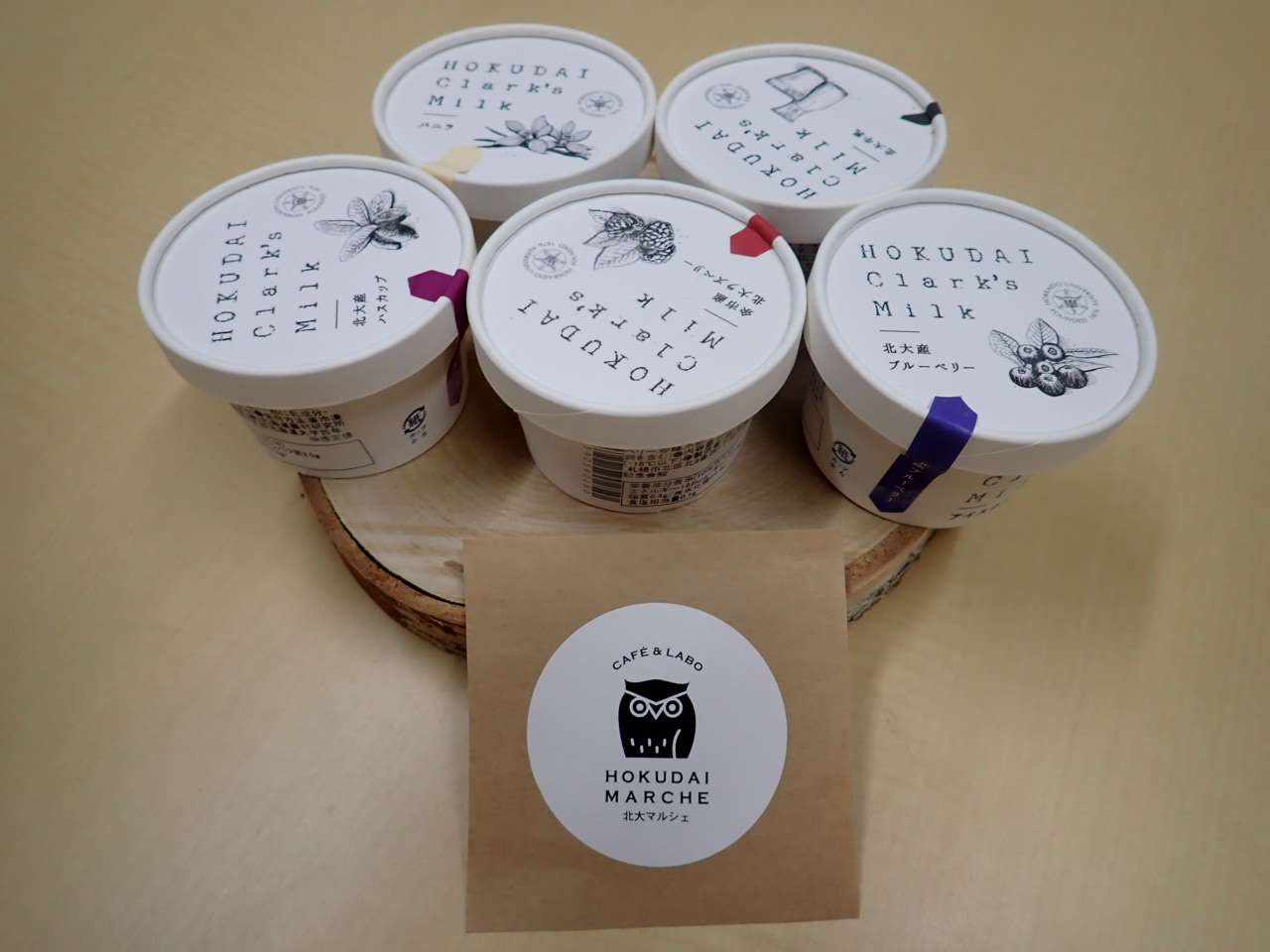 お味は、北大牛乳、バニラ、ハスカップ、ブルーベリー、ラズベリーの
