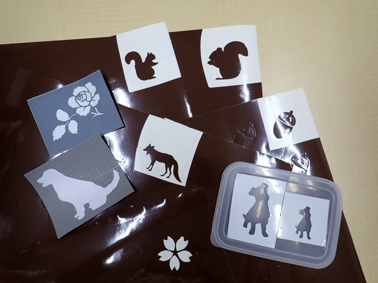 透明に仕上がります。絵柄をくりぬいたシールを使用すると、