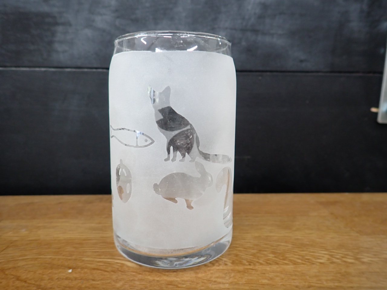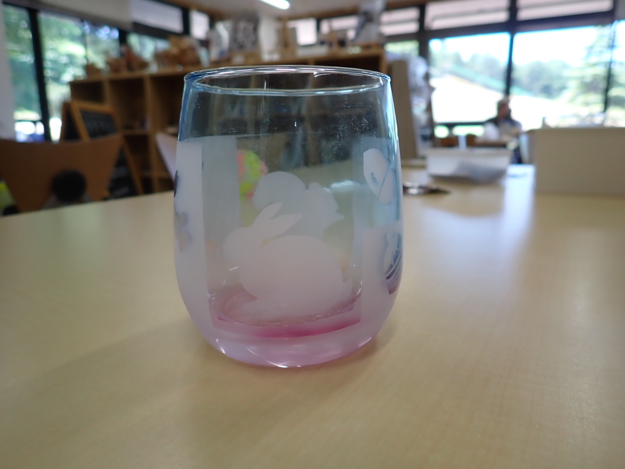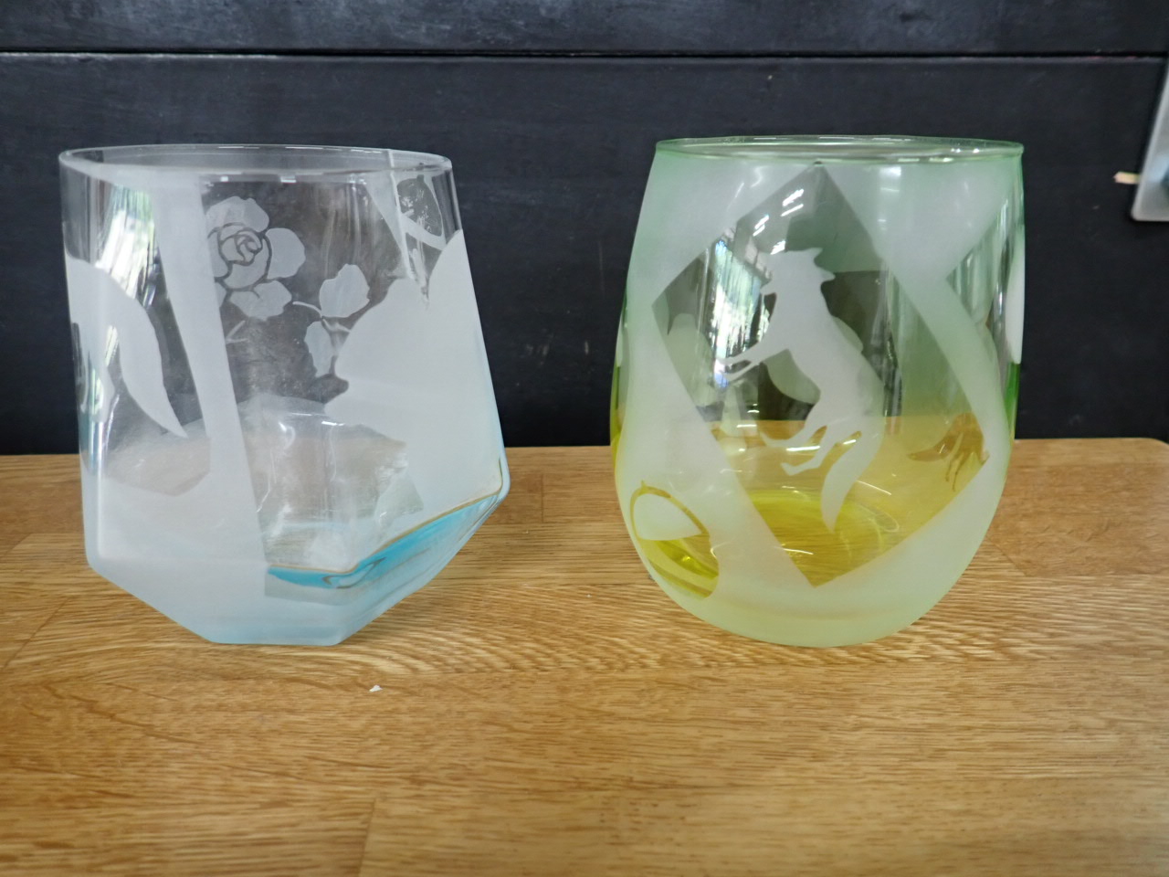 グラスにシールを貼って、研磨剤を機械で吹き付けて