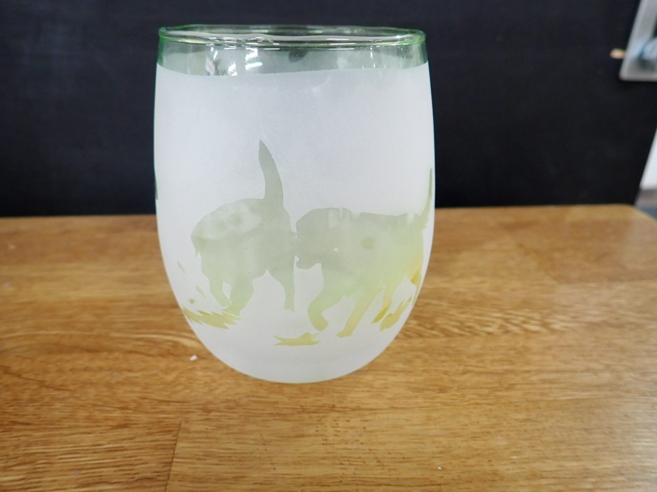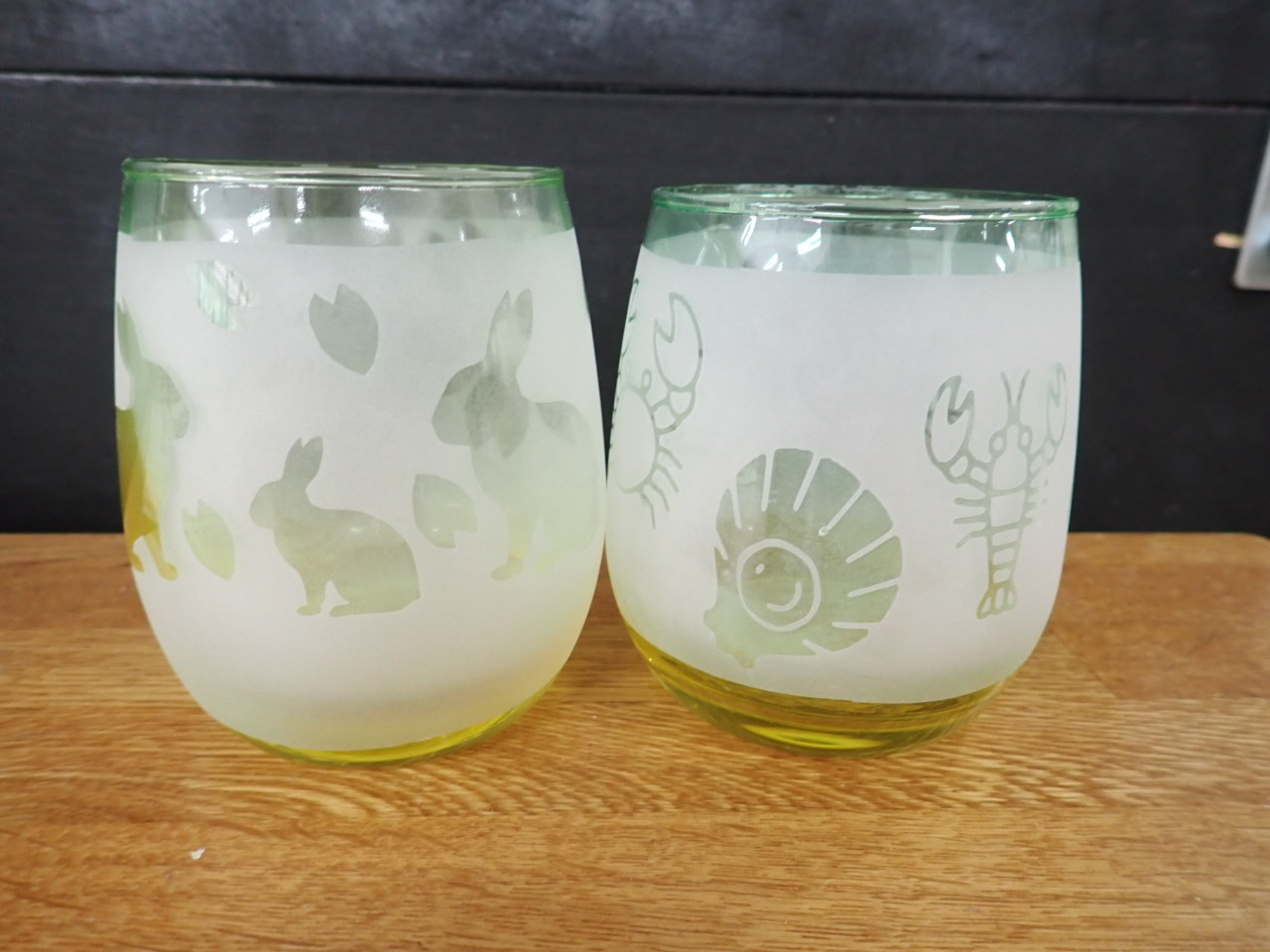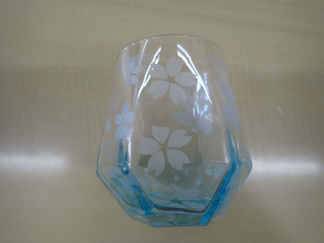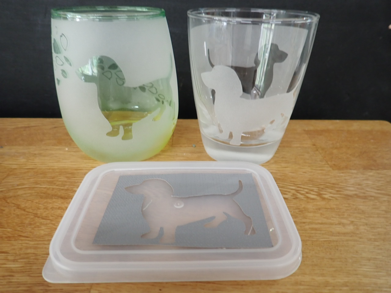 グラスにシールを貼って、研磨剤を機械で吹き付けて