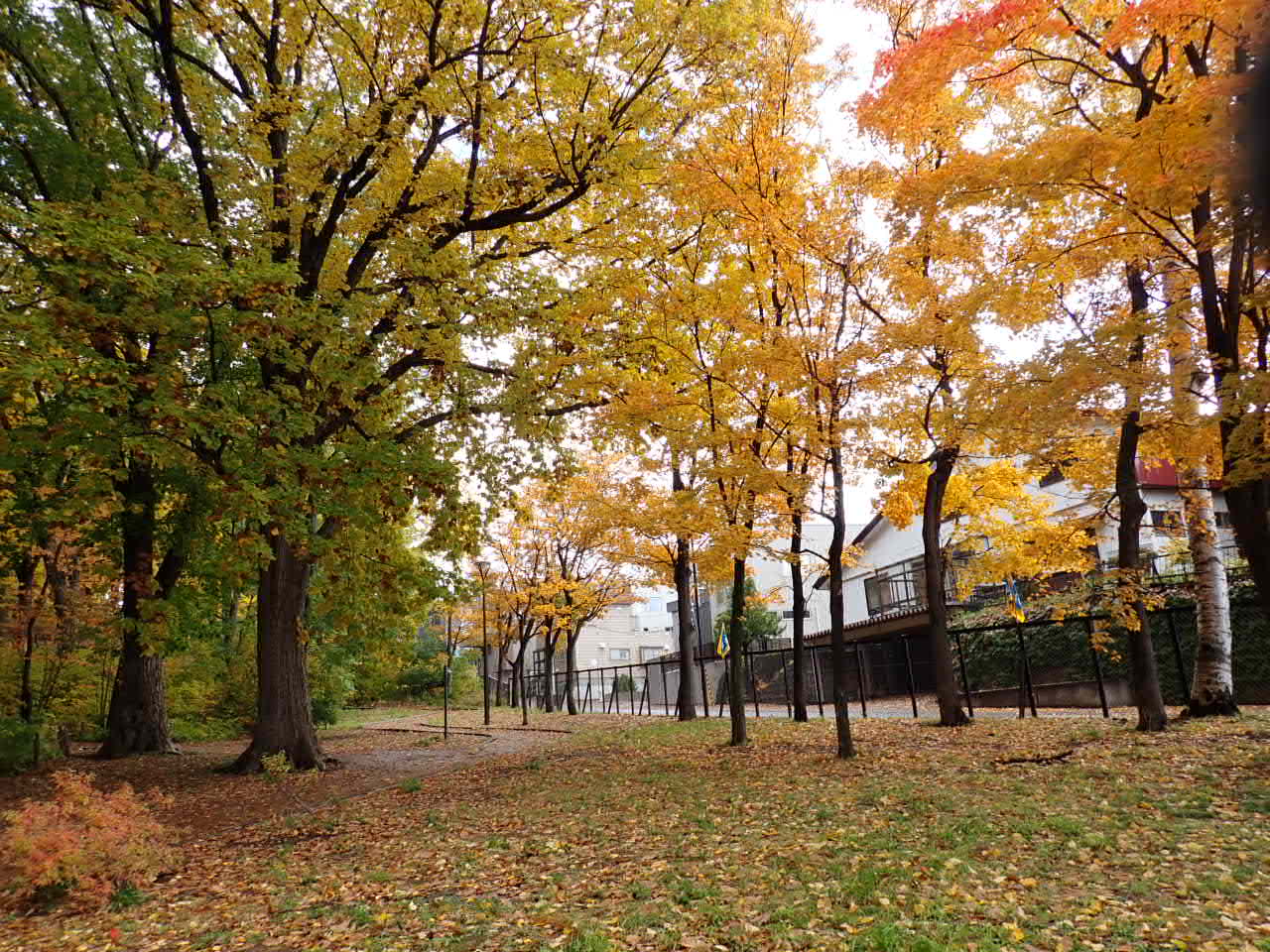 写真は月寒公園の中央園路の様子です。赤、黄、緑ととてもきれいです。
