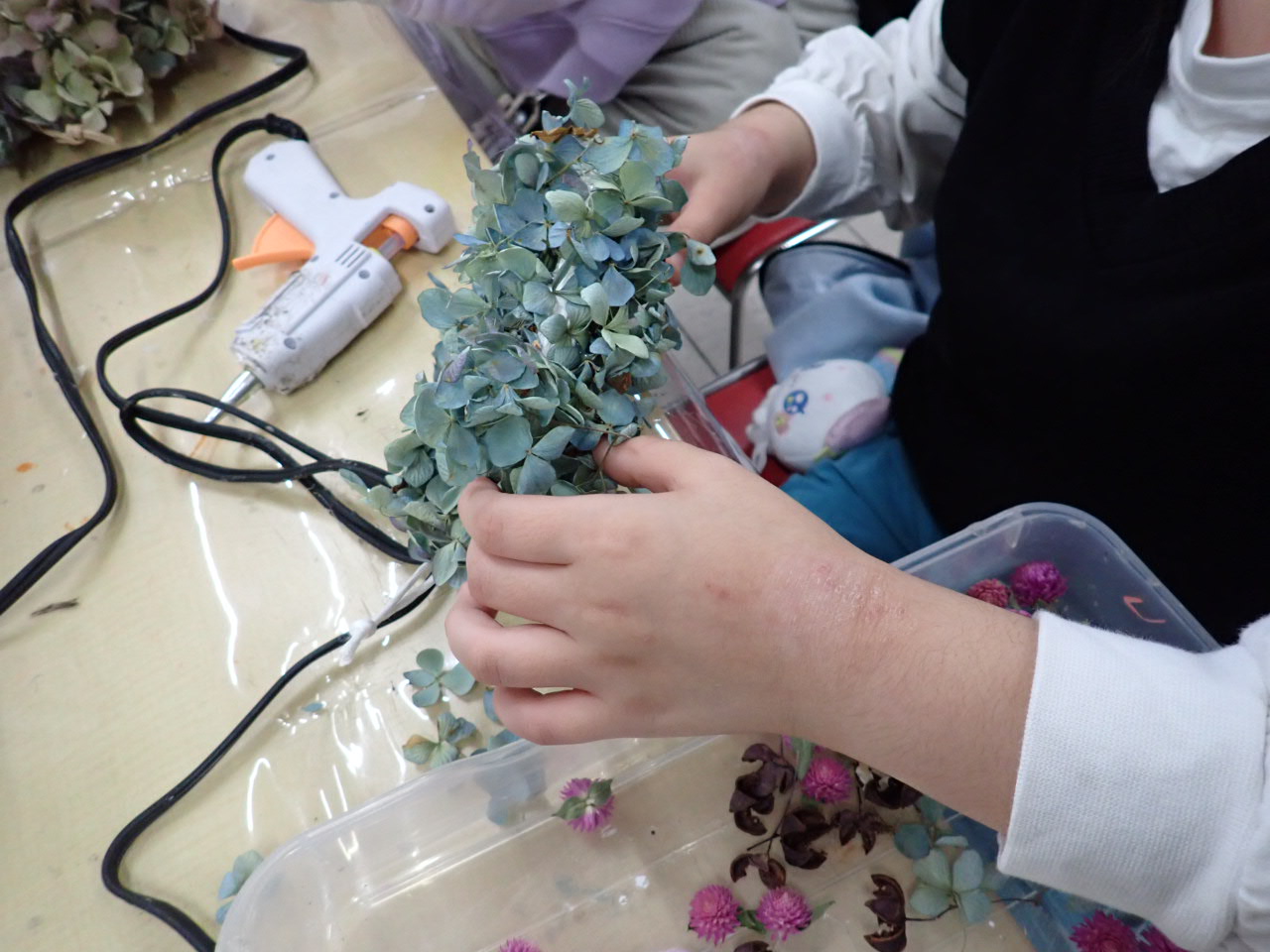 できます。「まだここにもお花つけれるね」「可愛くできたね。」
