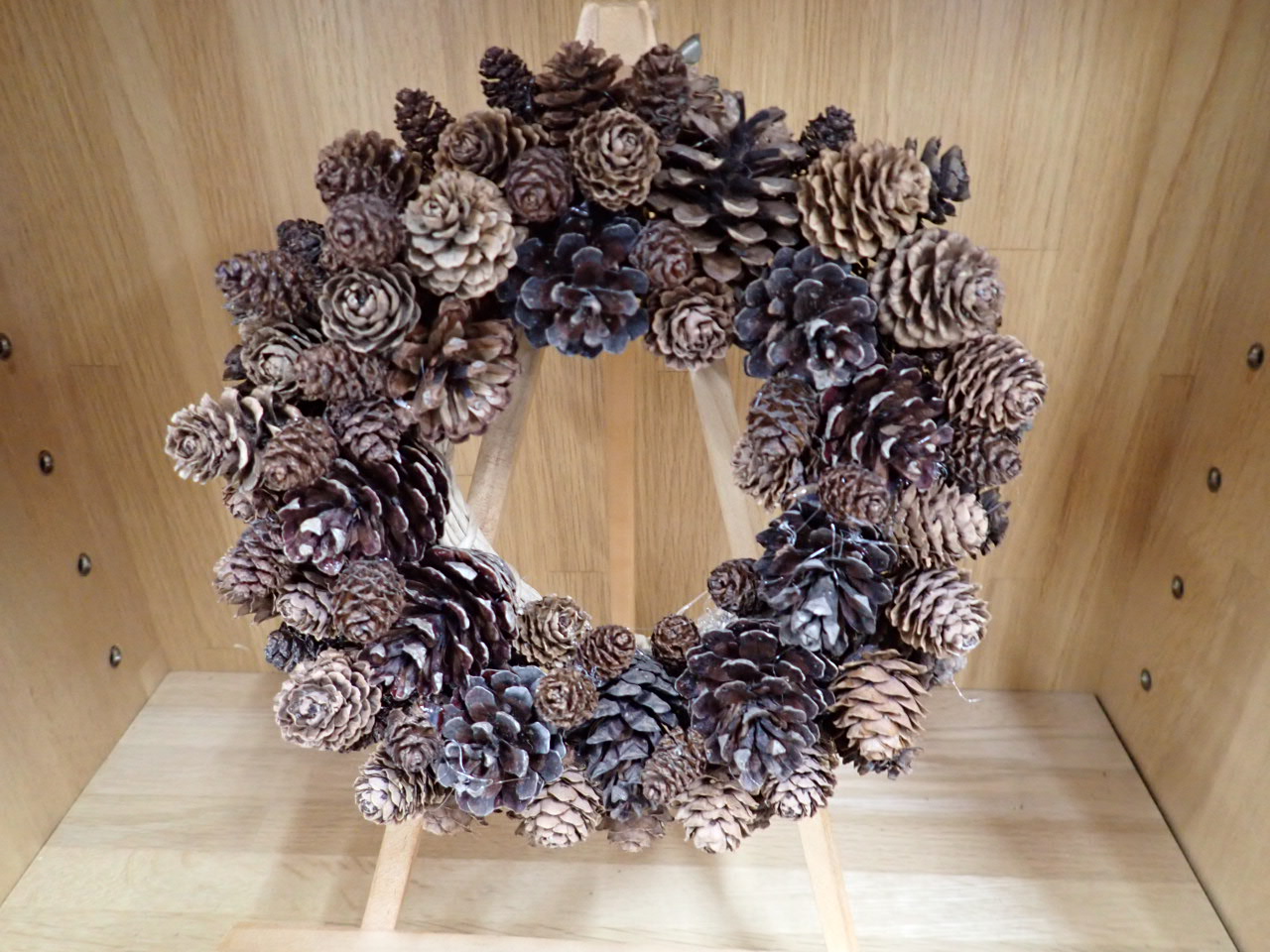 ドライフラワーやカラマツやモンタナマツの松ぼっくりを