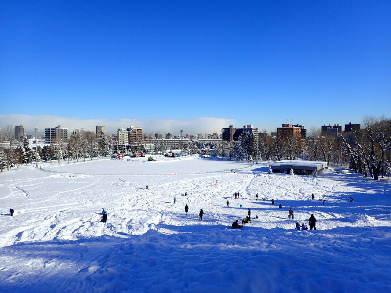 昨日の月寒公園は、青空が広がり、絶好の雪あそび日和でした!