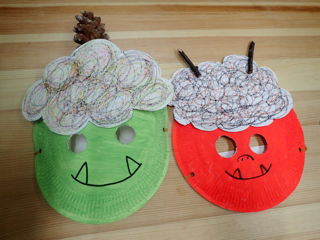 月さむぽでは、自然素材を使って、鬼のお面を作ります!