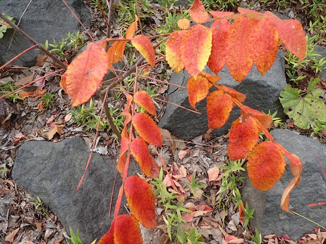 写真は、ヌルデという木の葉っぱです。赤や黄色に鮮やかに色づいて、とってもきれいでした。
