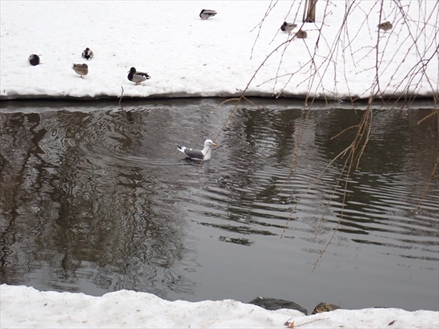 ボート池には、カモメやダイサギ、アオサギなどの野鳥が来ています。