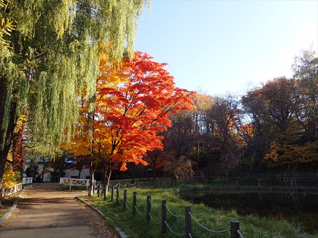 ボート池周りは、カエデの葉が赤や黄色に紅葉して、とてもきれいでした。