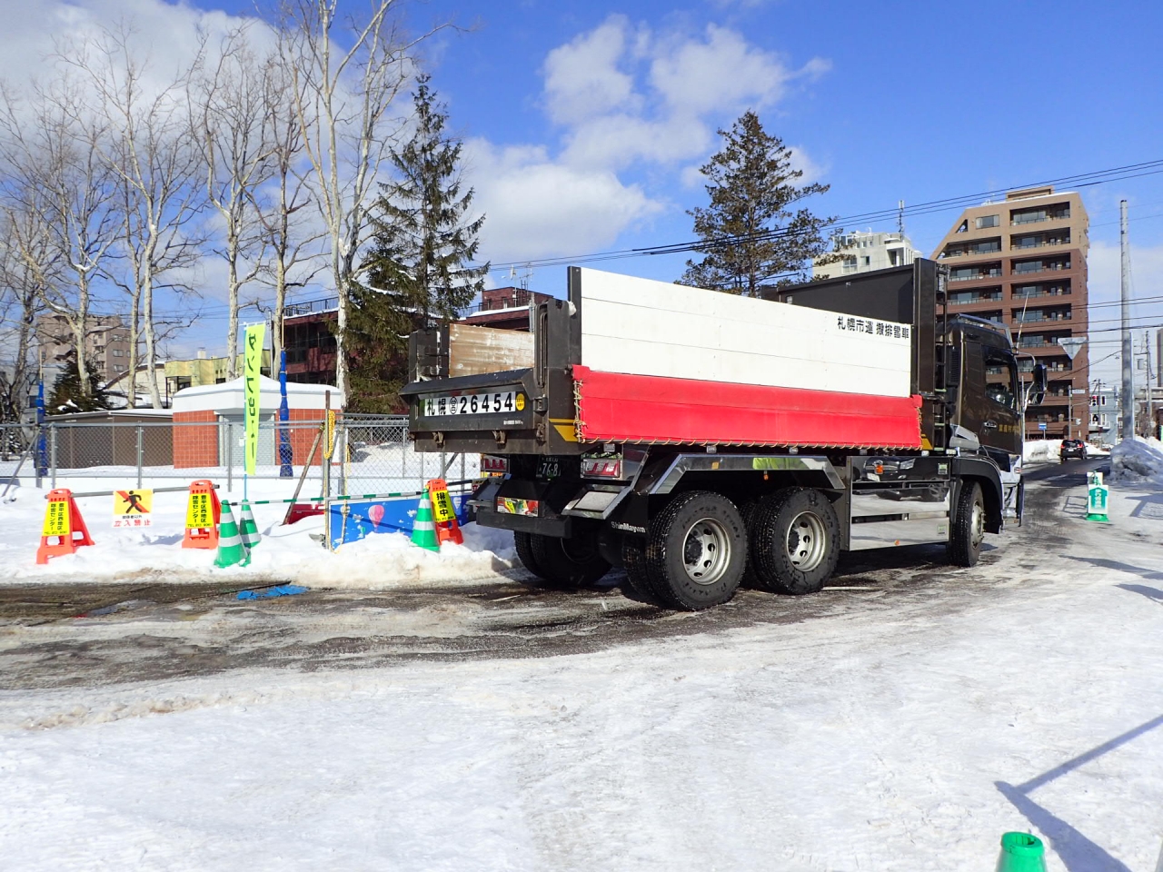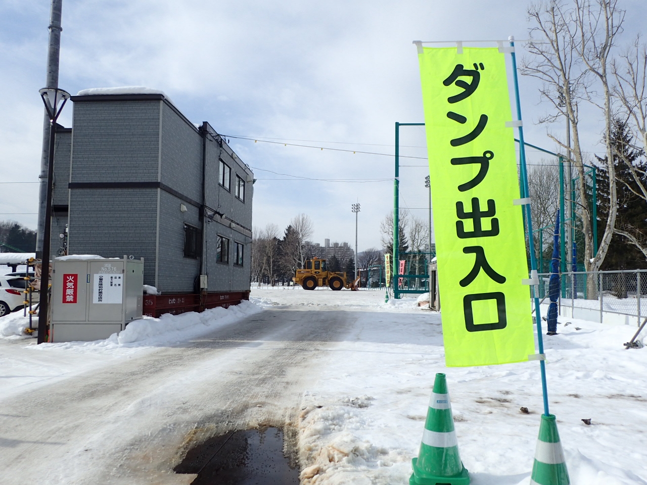 坂下入口は、たくさんの雪を積み込んだダンプが出入りしています。