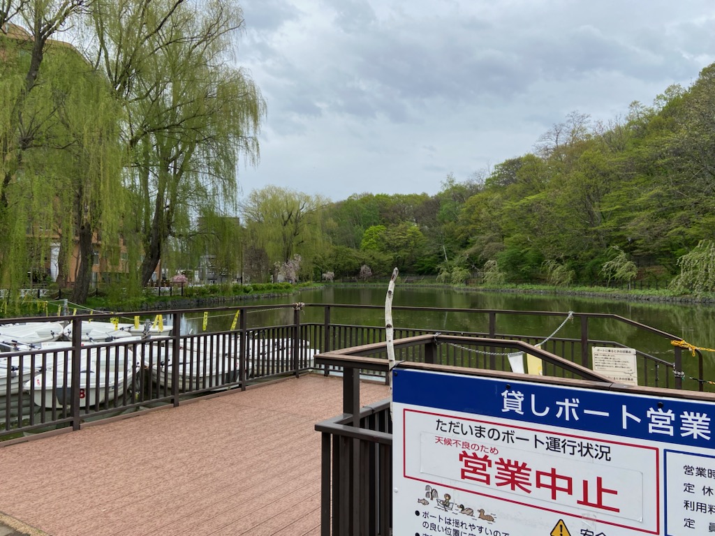 曇り空で湿気もなく、ボート日和です。ぜひボート池に遊びに来てください!