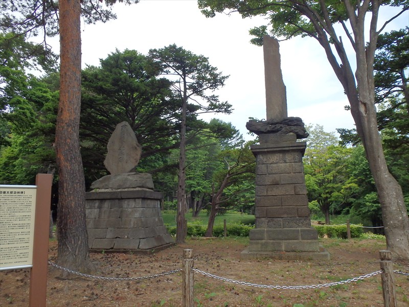 歴史の森には、月寒地域の開拓功労者である吉田善太郎の碑など、様々な石碑が点在しています。