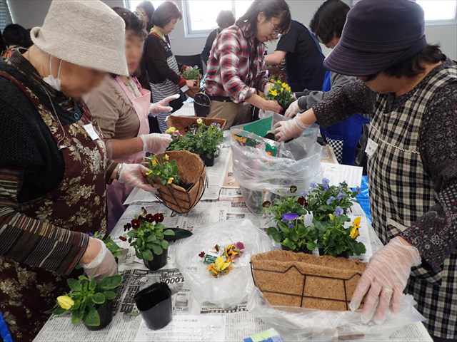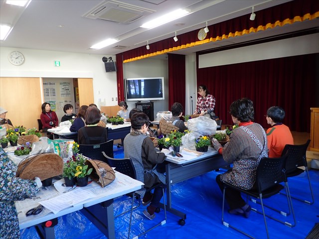 10月3日、「すみれクラブ」の皆さんが講師派遣事業を利用しハンギングバスケットの作製講習会を実施しました。