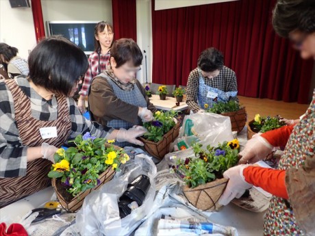 「すみれクラブ」のみなさんがハンギングバスケット講習会を行いました