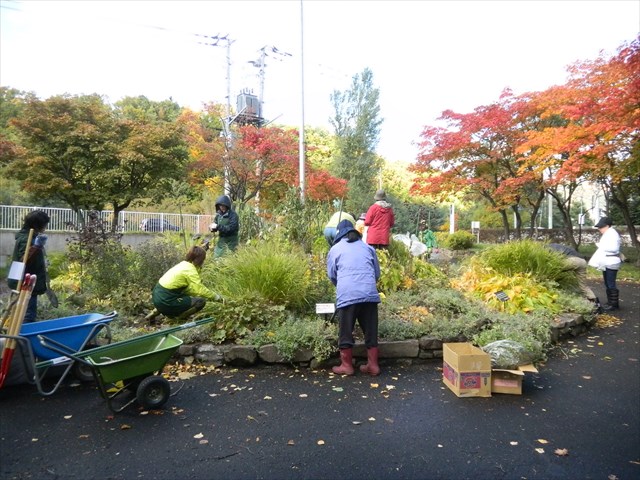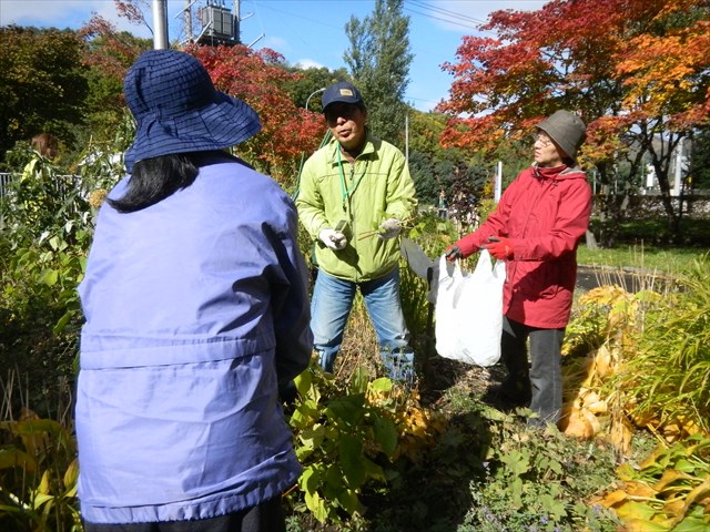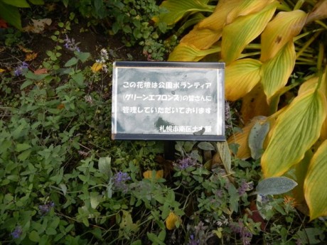 グリーンエプロンズのみなさんは、南区真駒内のエドウィンダン記念公園の花壇管理を行っています。今の時期、紅葉がとてもきれいですね。