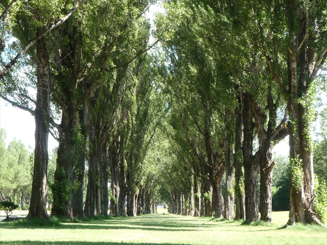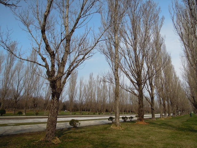 Poplar trees starts sprouting in the begnning of May. From June through August, you can enjoy  beautiful green leavs.