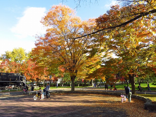 園内の紅葉を楽しみながら、交通コーナーでサイクリングをしたり、