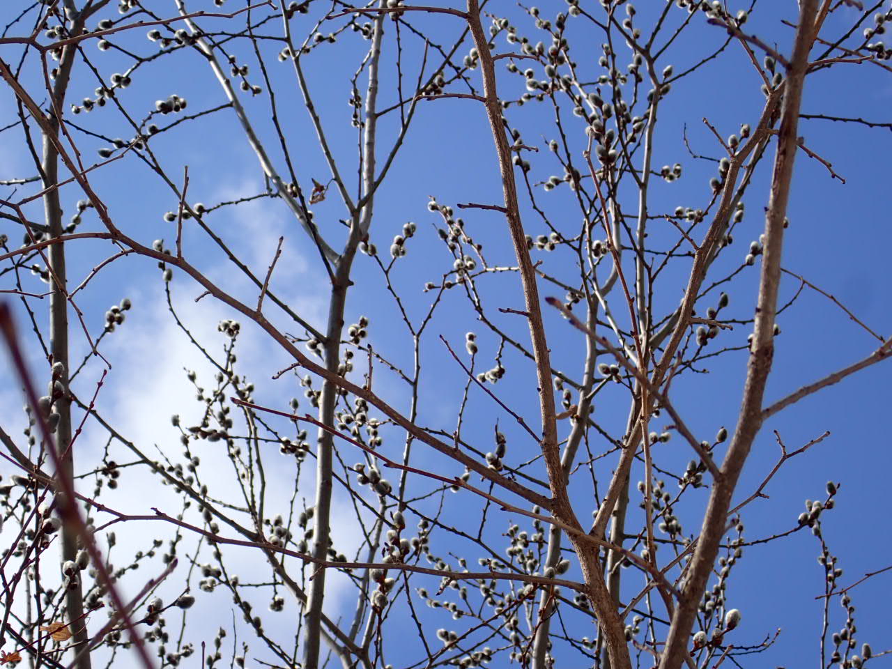 今日は、バッコヤナギが硬い冬芽の皮を破り、モコモコの芽が顔を出していました。