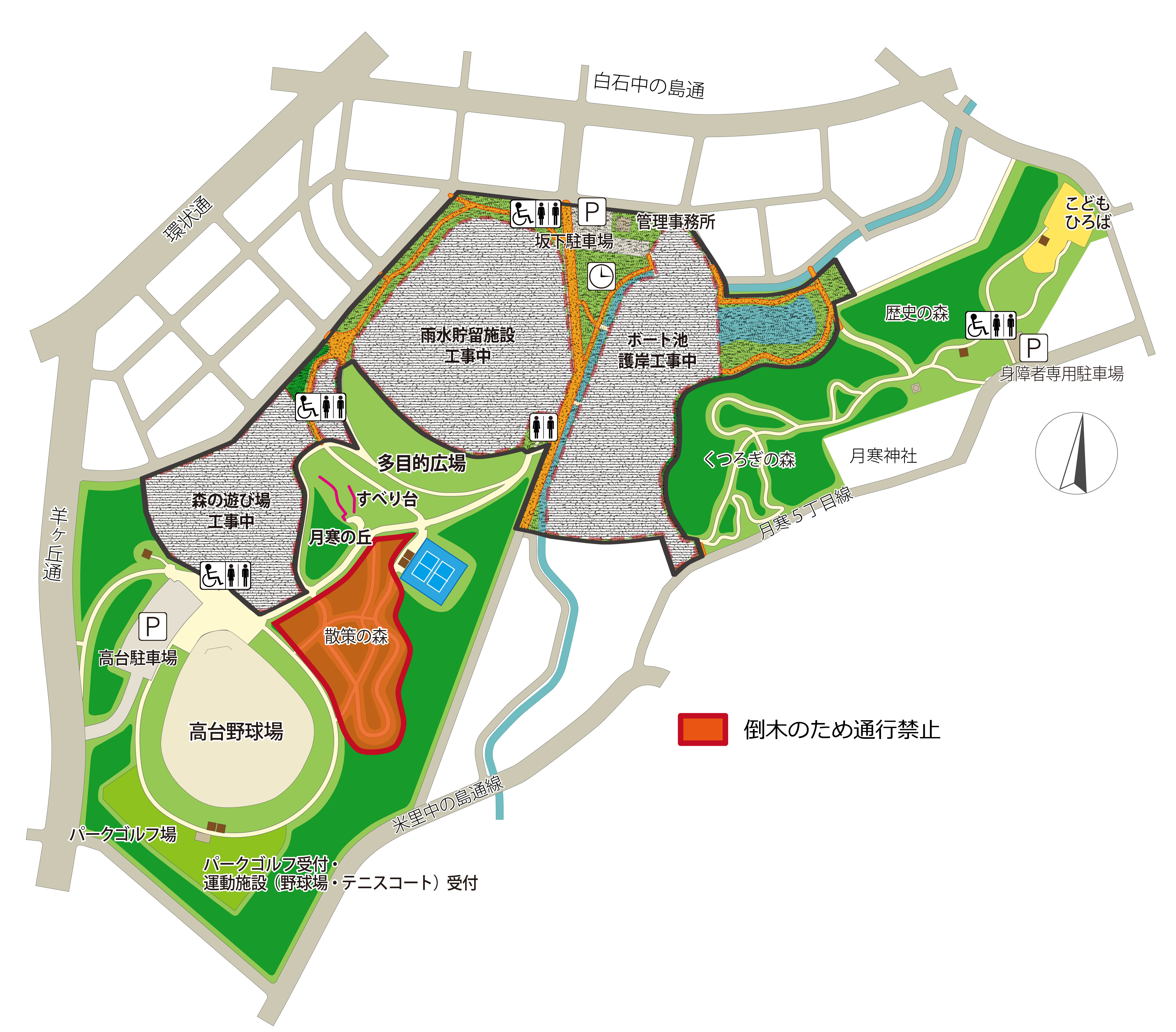 月寒公園内は再整備工事のため、一部通行や通り抜けが禁止となっています。ご理解とご協力をお願いいたします。