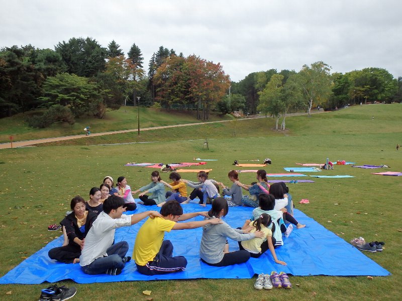 ↓最後は皆で輪になって、肩をもんだり、背中をなでたり、リラックスして終了しました。
