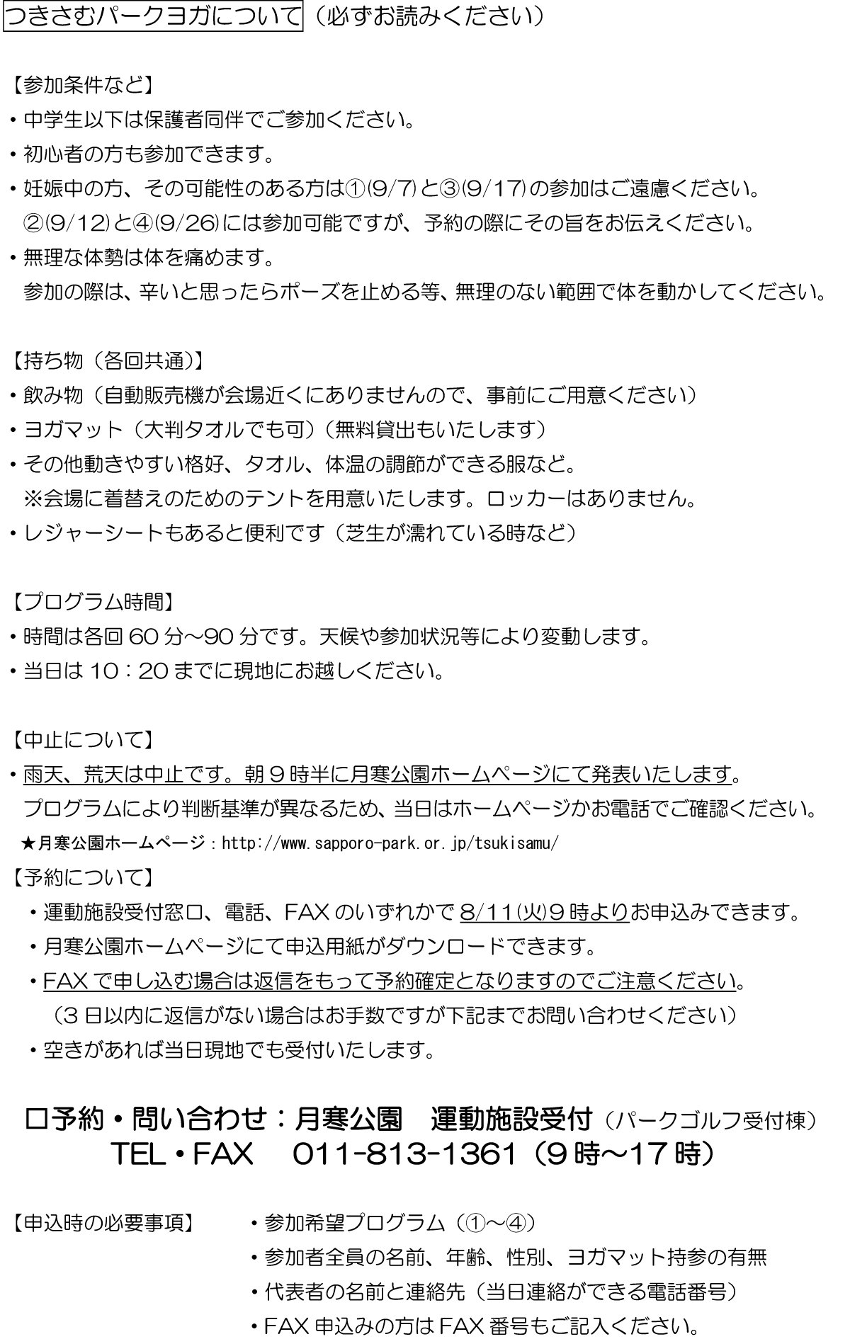 「つきさむパークヨガ」(予約優先・8/11(火)から予約受付開始)