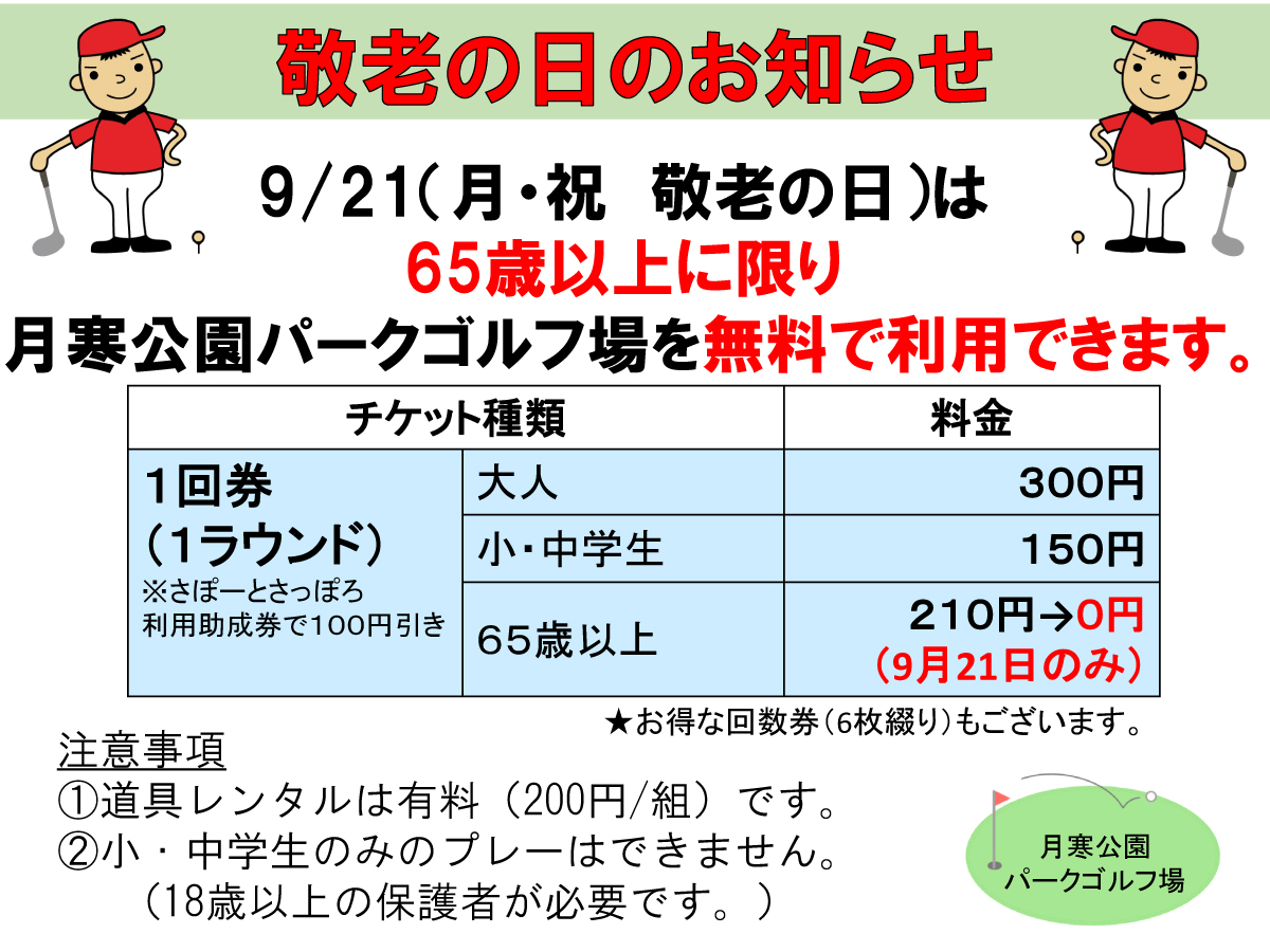 ここ月寒公園のパークゴルフ場でも65歳以上のご利用が無料になります!ぜひ遊びに来てくださいね!