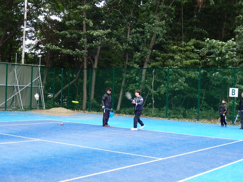 いつもより暖かい格好が必要な風が吹く中、「月寒テニス教室」を開催しました。