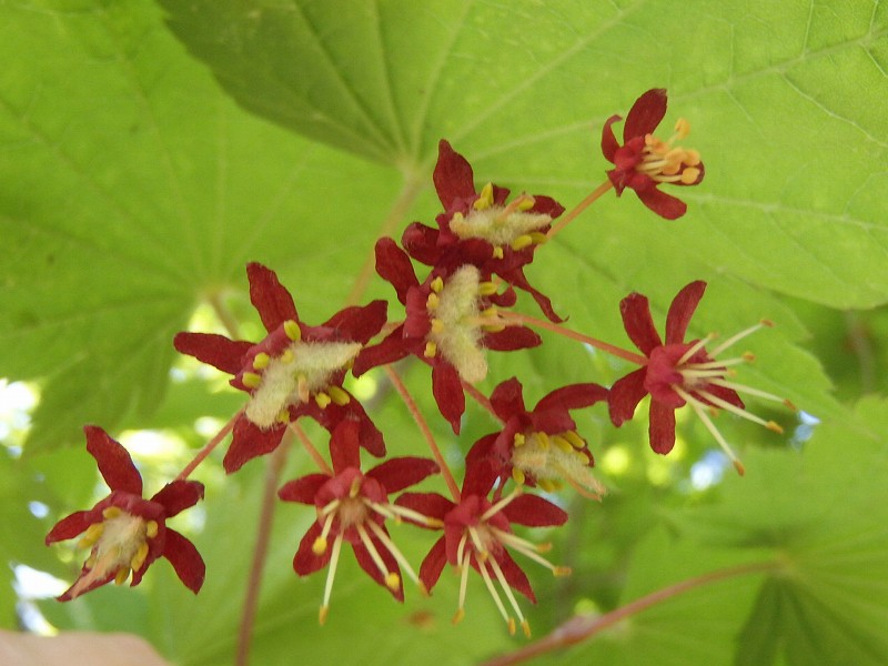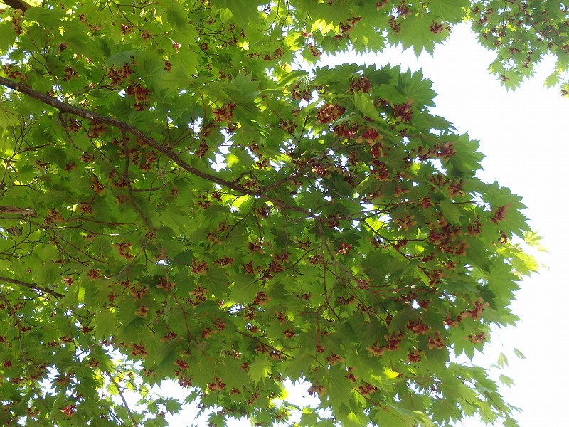 ライラックの近くでは、ハウチワカエデの花が咲いていました。