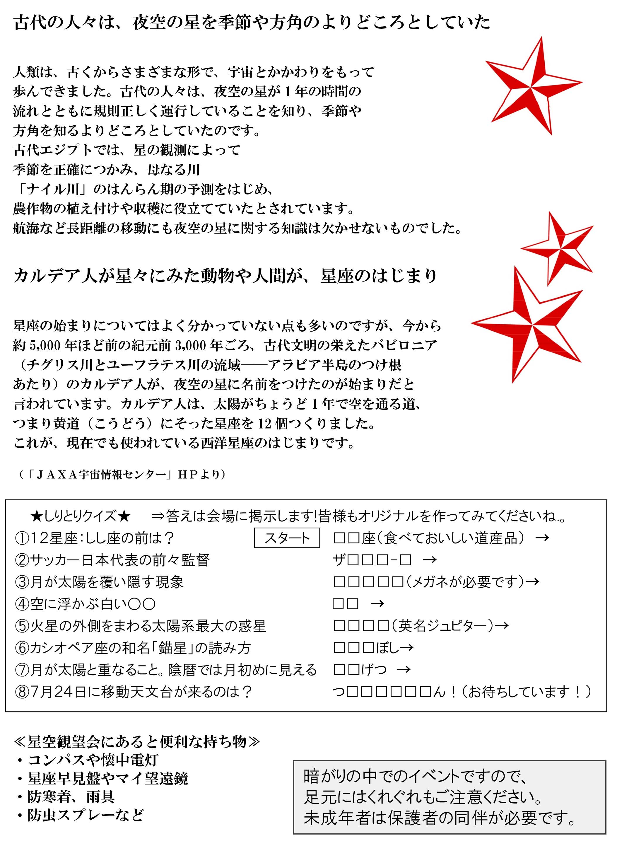 開催内容:移動天文車(大型望遠鏡)や小型望遠鏡による星空観望など