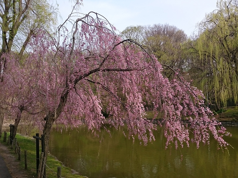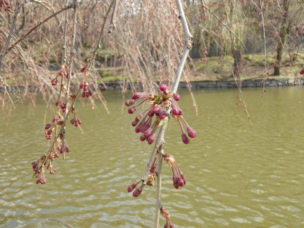 ボート池の周りのシダレザクラも咲きはじめました。