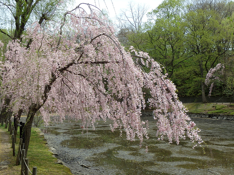 ボート池まわりのシダレザクラはまだ見頃が続いています。