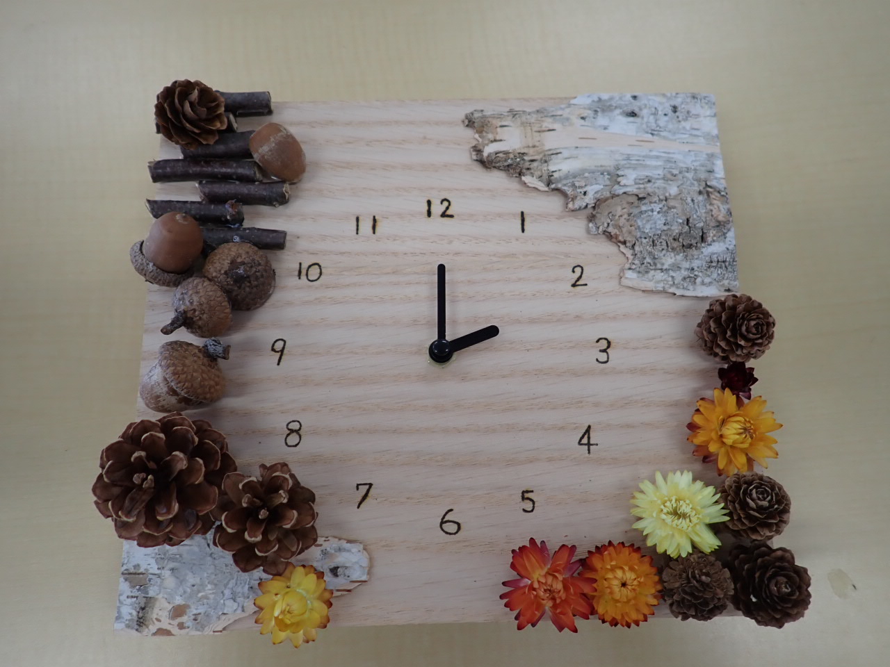 毎年人気の木の実の時計。素敵な時計を作りに来てくださいね。