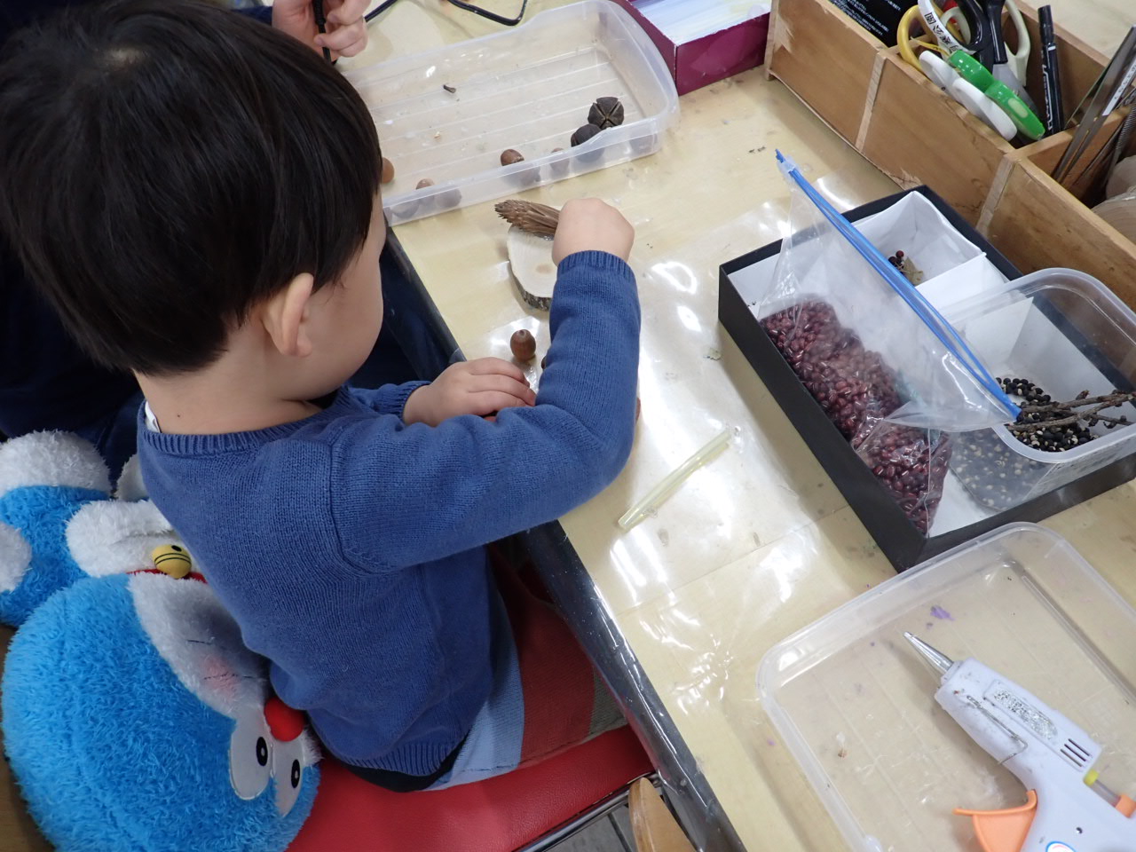 いろんな木の実を眺めてどうしようか…?と困り顔だった子ども達もスイッチが入ったら