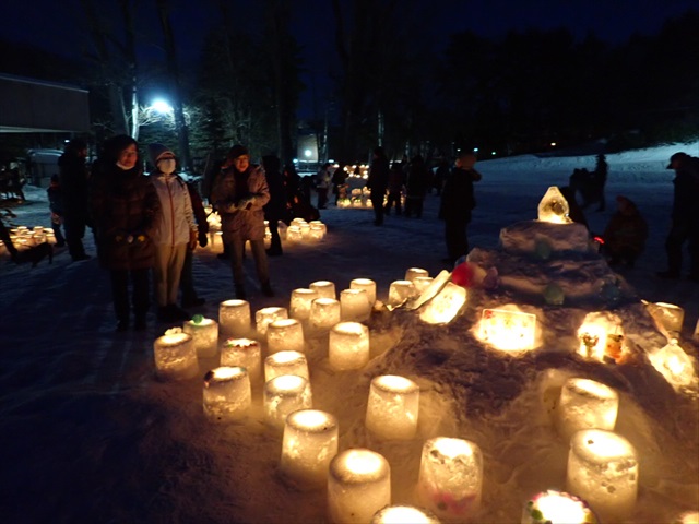 イベントは13時から、スノーキャンドルの点灯は16時ころ、終了は17時30分頃を予定しています。