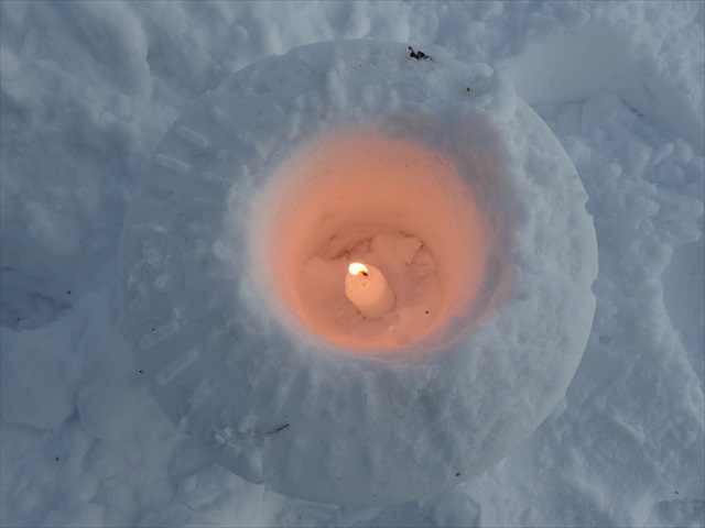 雪山に穴をあけてキャンドルを入れたり、