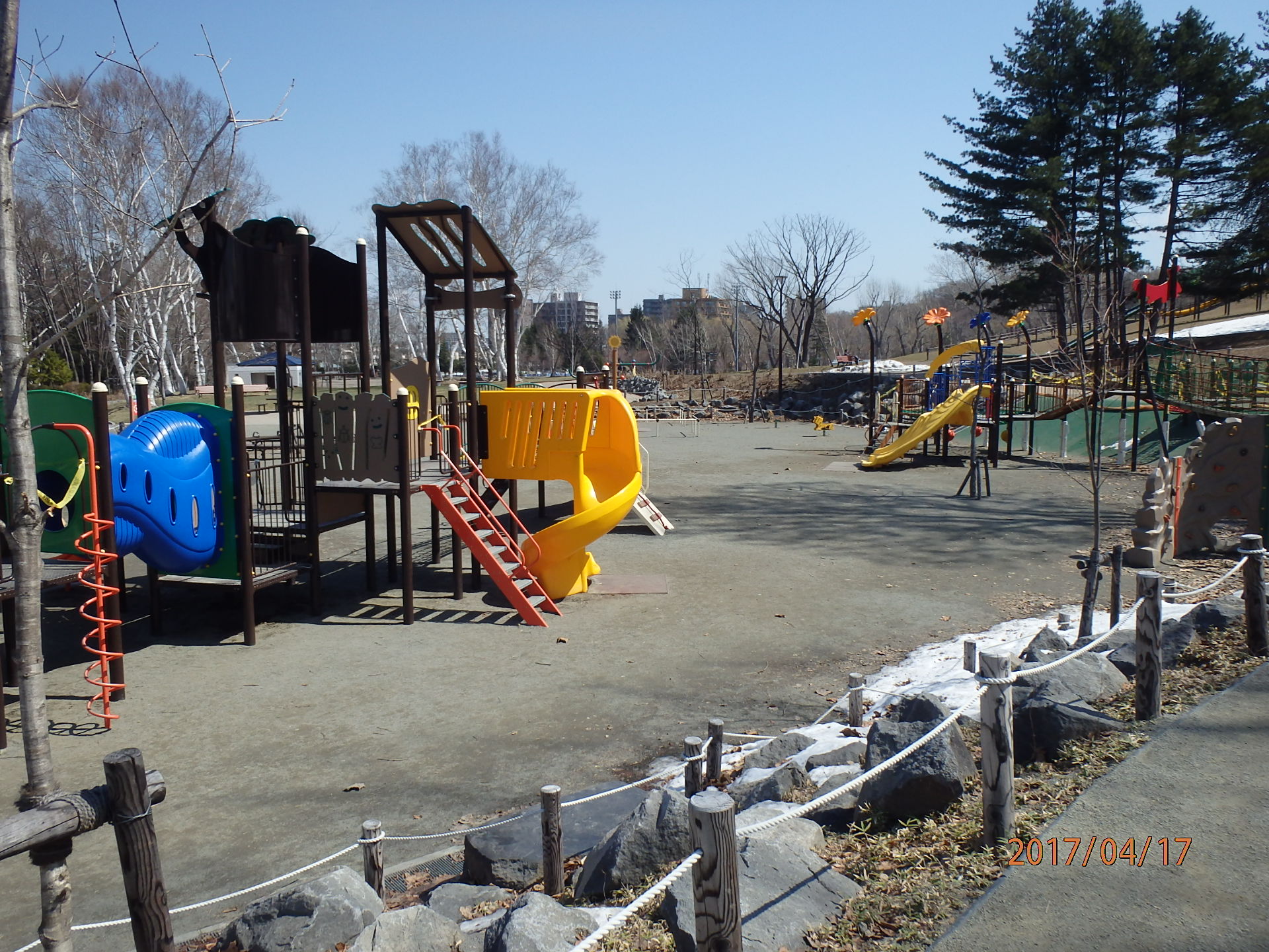 雪が解けて、遊具の点検が終わってからの開放になりますので、遊具で遊べるのは4月中旬以降になるかと思います。