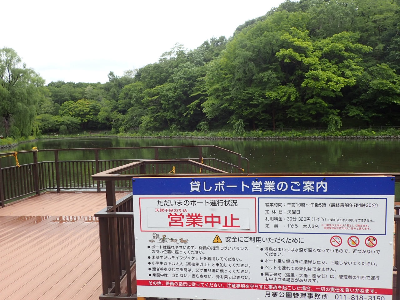 本日は朝からの大雨と雷により、貸ボートとパークゴルフ場の営業を中止いたします。