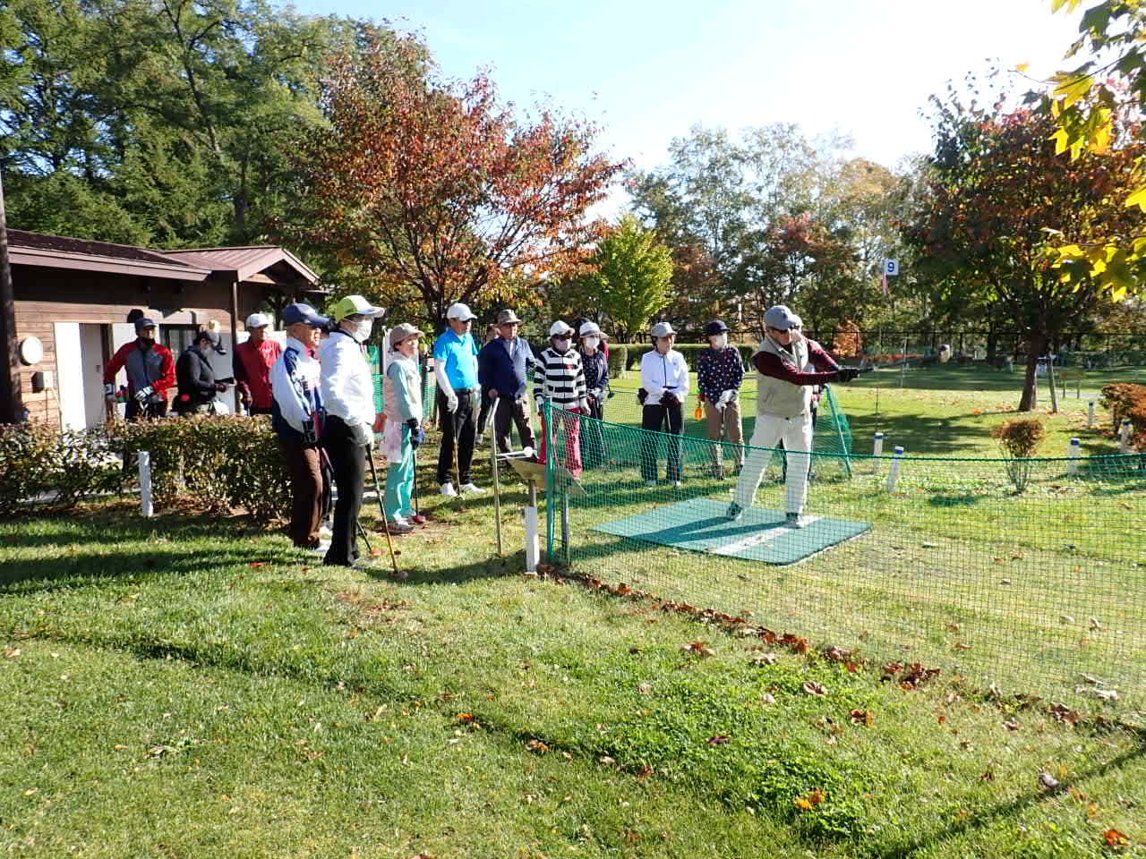 パークゴルフ愛好家のみなさんが32名、和気あいあいとパークゴルフを楽しむ姿