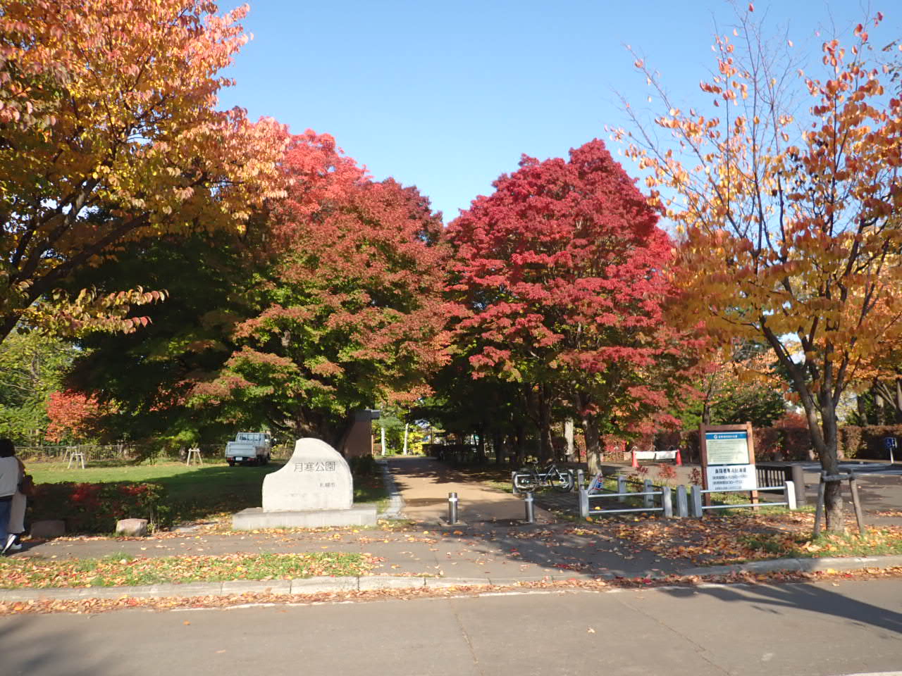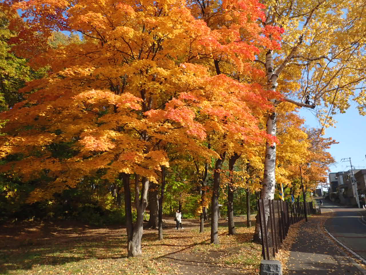 写真は月寒公園の中央園路の様子です。赤、黄、緑ととてもきれいです。
