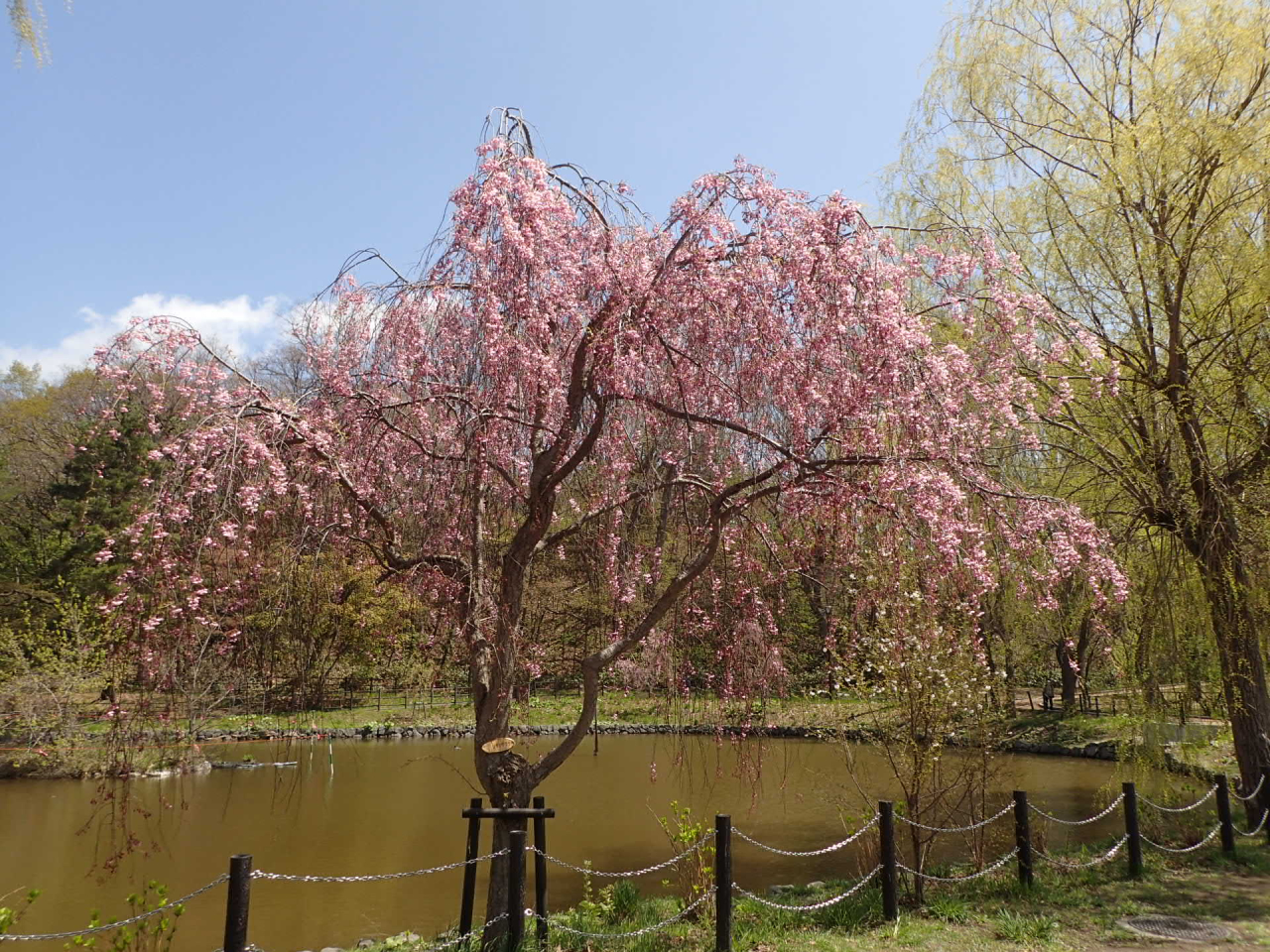 エゾヤマザクラは散り始めていますが、今は、ボート池のシダレザクラが、