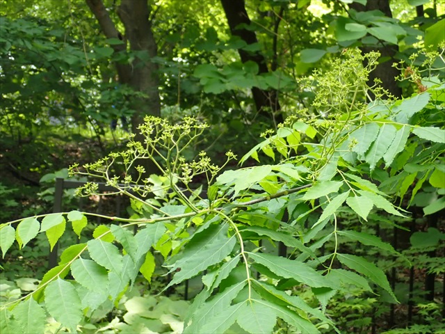 ニガキ(ニガキ科の樹木)も開花していました。秋には藍色の実を付けます。