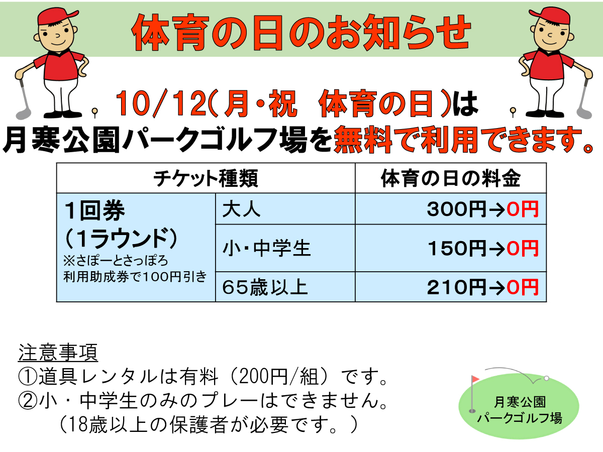 ☆月寒公園パークゴルフ場定休日☆