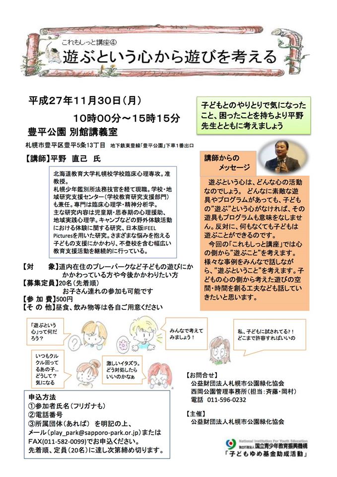 11/30(月)「プレーパークこれもしっと講座」(豊平公園で開催)