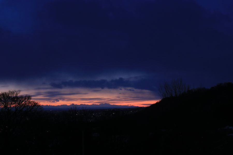 この後、太陽は上の雲に吸収されて見えなくなり、7時半を過ぎると雪もちらつきはじめました。