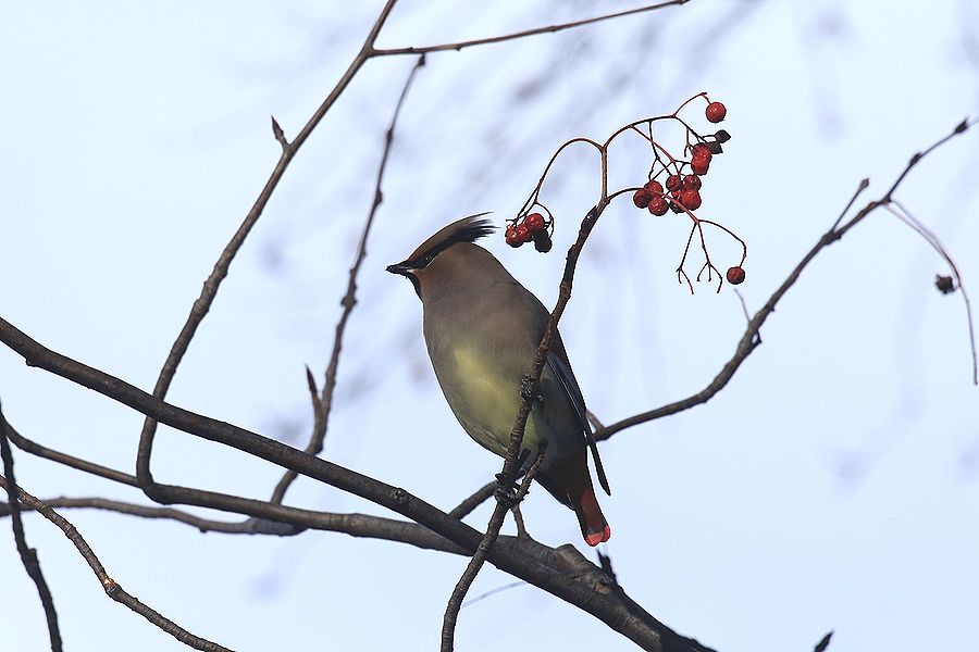 キレンジャクは過去に何度か群れで越冬したことがあり、その場合2月になるとヒレンジャクはまったくいなくなってキレンジャクだけになりますが、今冬はどうなるか、要注目です。