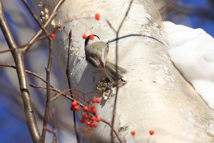 キレンジャク、コゲラ、ゴジュウカラ、シジュウカラ、シメ、