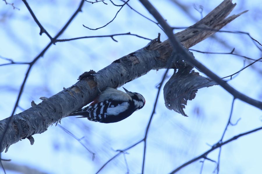 ウダイカンバの枯れ木で木をつついて餌を探していました。 動画は30秒ほどの短いものですが、見ている間数分間ずっとこうしていました。 アカゲラが木をつつく音もかすかに入っています。