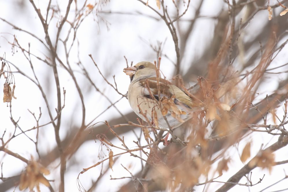 シメは何度か現れ、ほとんどが上空か木の高い位置にいたものですが、栗の木デッキ付近ではシメにしては近くで観察できました。