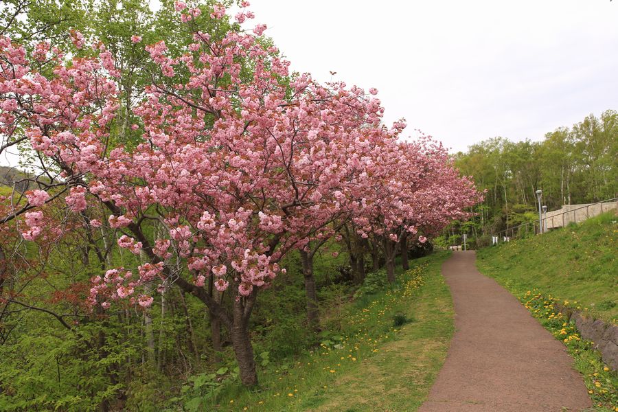 旭山記念公園の八重桜、明日もまだ見頃でしょう。