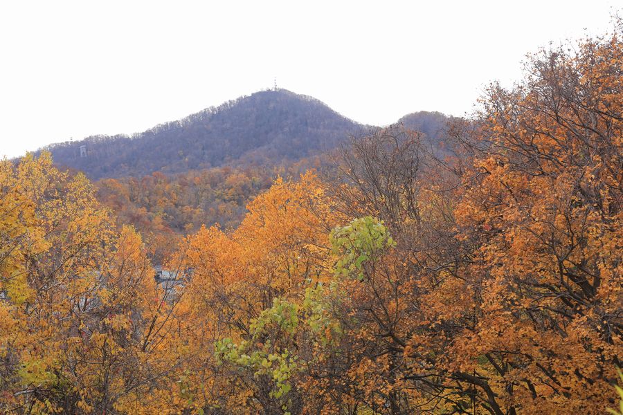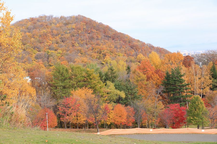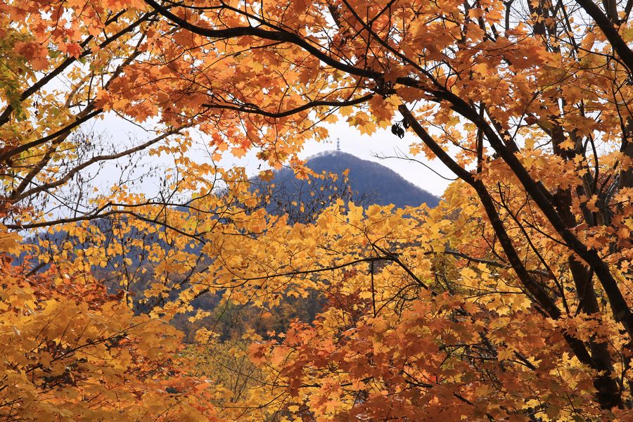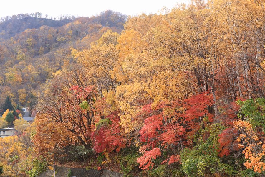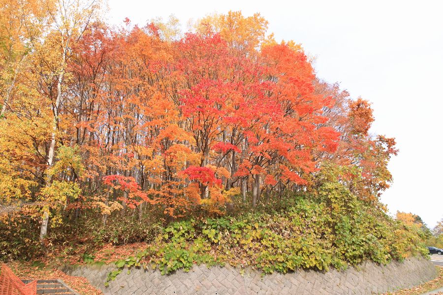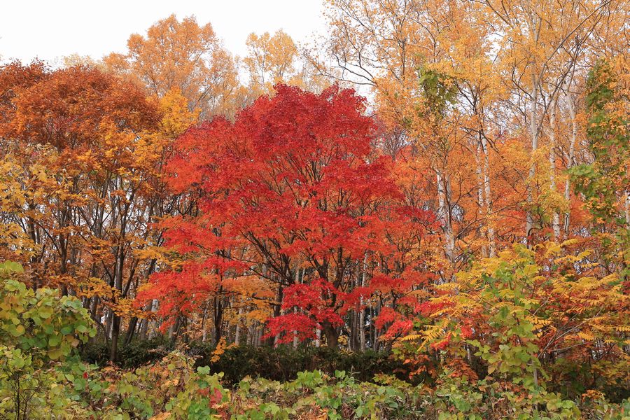 最初は、旭山でいちばんきれいに色づくヤマモミジの今日と5日前の写真を比べてみてください。