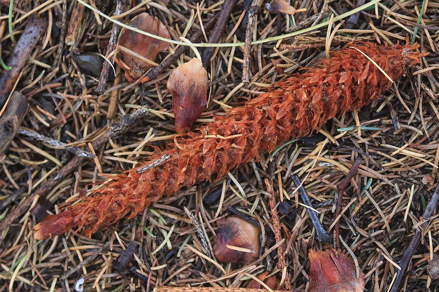 写真は通称「エビフライ」、エゾリスがヨーロッパトウヒの松ぼっくりを食べた食痕で、松の実を食べた断片も周りに見られますが、新しいものがミュンヘンの森にたくさん落ちています。
